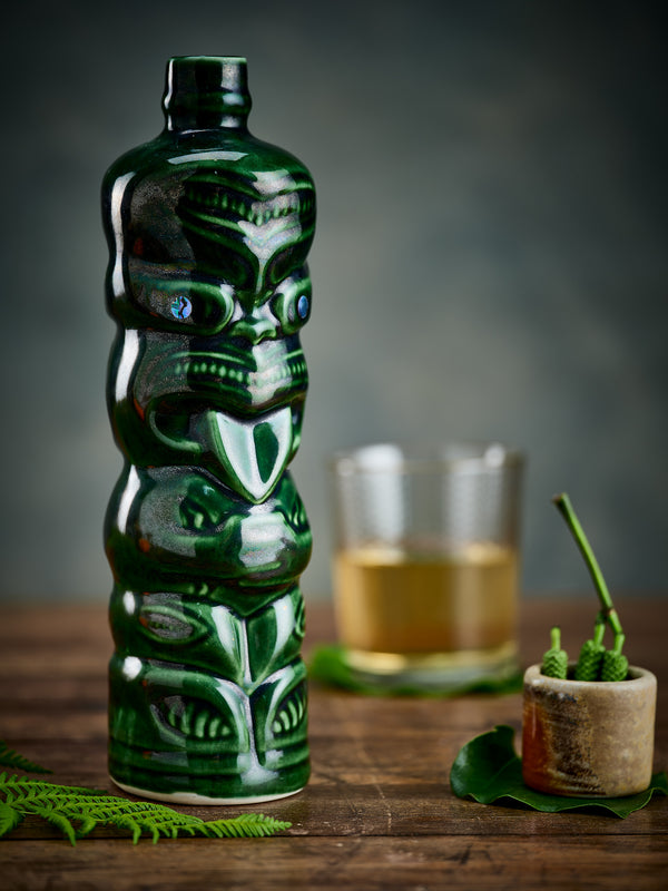 Each bottle was a ceramic vessel shaped as a Māori tekoteko, a guardian watching over both spirit and story. Produced over the years by Orzel and Crown Lynn, among other incredible manufacturers, these vessels became iconic pieces of New Zealand design.